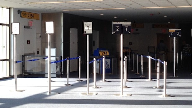 United used a rather efficient boarding process, with individual lines set up for different boarding groups, allowing passengers to line up when they wish without crowding out people who are already getting on the plane.