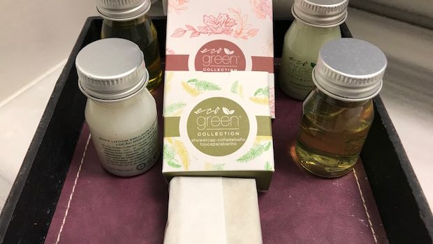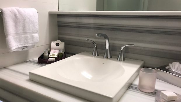 There were even a couple bathrobes in the closet, which is not typical in a hotel at this price level. The hotel bathroom was stocked with Eco Green bath amenities and has motion-sensitive nightlights, which is great for middle-of-the-night visits.