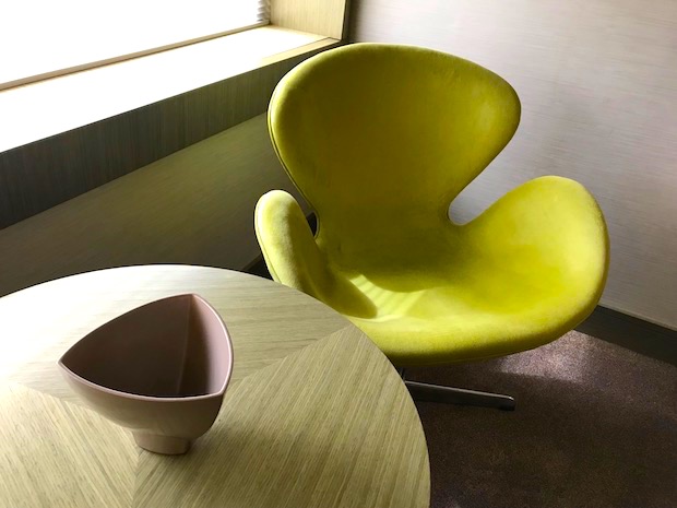 THE GUEST ROOMS: This Buenos Aires hotel is well appointed for business travelers as well as anyone planning an Argentina vacation or a grand South America tour. I stayed in room 707, which has a comfy king-size bed with lots of pillows. The décor and amenities are fresh and modern. Soothing shades of brown and tan were accented by a couple hip, green chairs (I’m not good enough at design to identify the style of the chairs, but I like them a lot. Check out the photos).