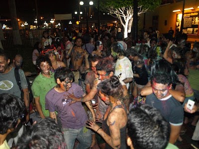 This train of barely organized chaos continued long into the afternoon until finally disgorging the paint-caked crowd into Barranco’s main plaza, where the party would continue into the firework-punctured night.